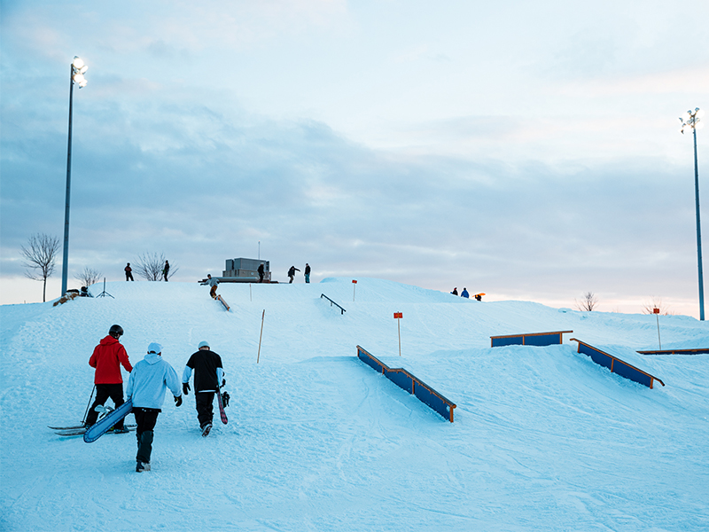 Poursuivez au Parc Terry-Fox, idéal pour dégourdir les jambes des enfants avec sa butte à glisser éclairée, mais surtout, son parc à neige avec modules. Le parc à neige est idéal pour initier les jeunes au snowboard et au snowskate (location possible) dans un environnement sécuritaire et amusant.