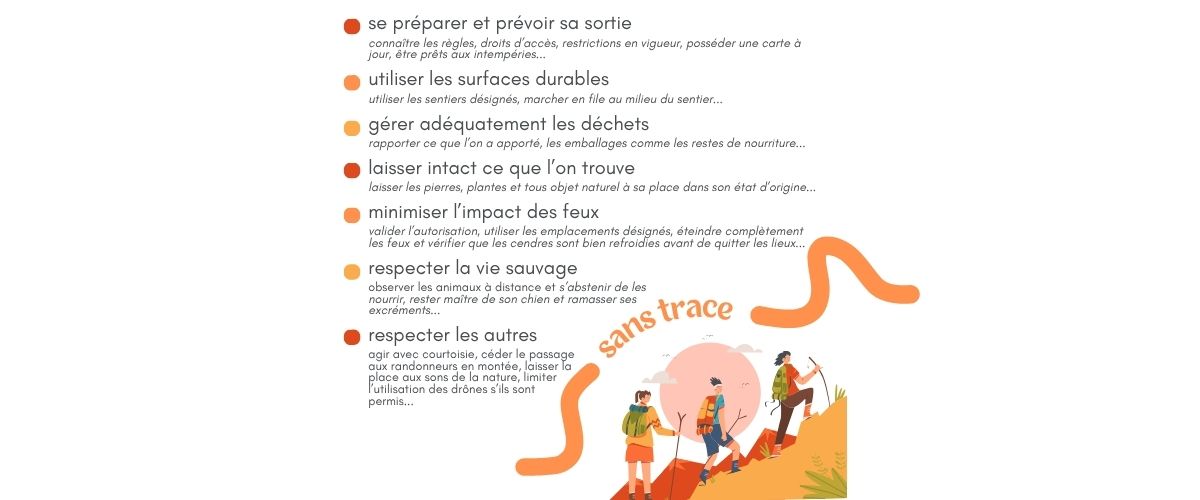 La vision du programme Sans trace s’appuie sur la base que chacun profite du plein air de manière à valoriser l’environnement aujourd’hui, mais aussi pour les générations futures. Bien que les centres de plein air et les organisations soient un maillon essentiel dans la diffusion de cette vision, nous pouvons tous y adhérer individuellement en appliquant les sept principes Sans trace ;
