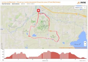 This short circuit, proposed by host and journalist Yvan Martineau, a citizen of Bromont, can serve as an initiation to gravel cycling. It starts at the municipal parking lot in Vieux-Bromont, 200 meters northeast of the Shefford / Compton corner (behind the Montessori school 20 Ch. Compton, Bromont, Quebec J2L 1E7).