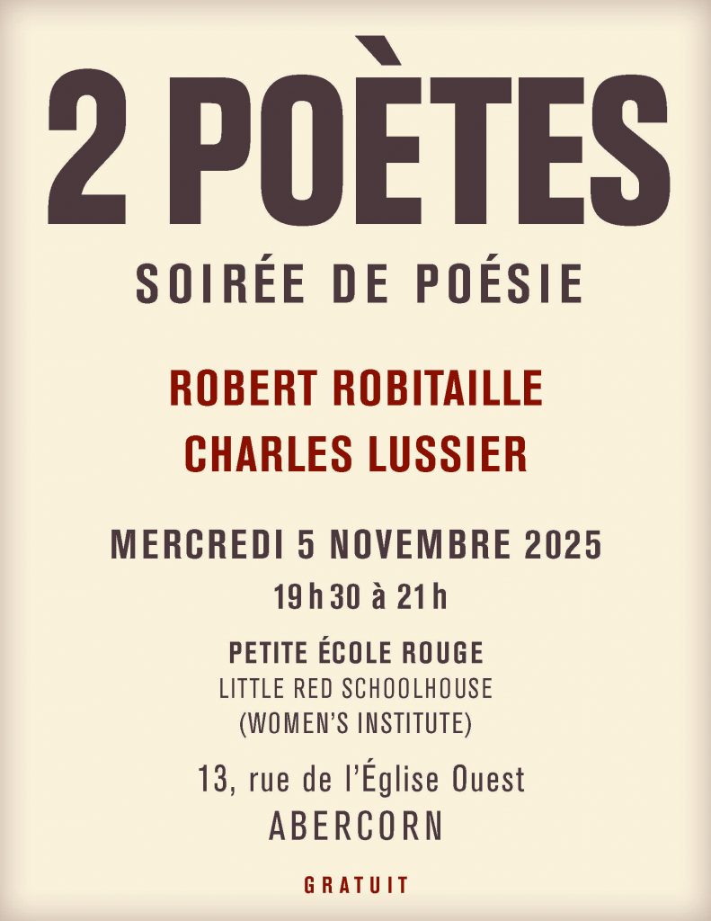 On vous attend pour une soirée toute en poésie avec deux poètes invités : Robert Robitaille et Charles Lussier .